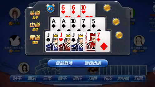 整副牌协同:组合过程中前、中、后墩牌型相互递增,不得出现破坏顺序的情况